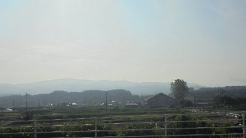 宝達山がゆらゆらと・・・写真は蜃気楼でしょうか、ここは砂漠?