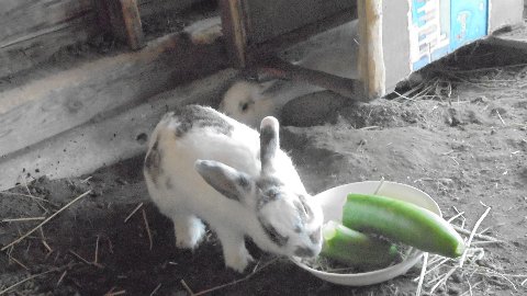今日はごちそう ウサギ小屋に朝ご飯が来た