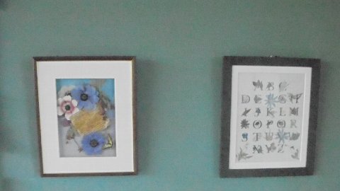 葛葉さんの押し花の作品が入れ替わりました。またすてきな作品をたくさん飾らせていただきました。子どもたちはもちろん作品展においでた保護者のみなさんにも見ていただきたいな。押し花でアルファベット・・・