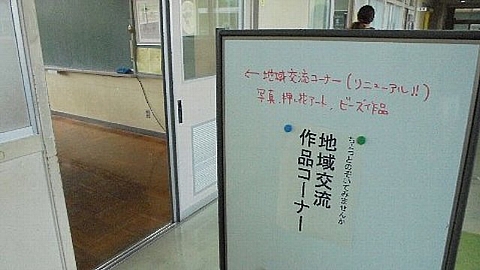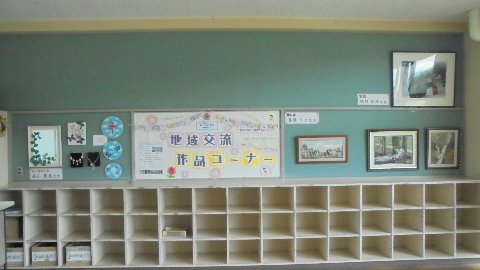 参観日にあわせて、「地域交流コーナー」をリニューアルしました。廊下に看板を出して、来校者にお知らせしました。これからも作品を増やしていきます。出展して下さっている皆さんありがとうございます。