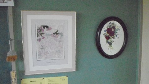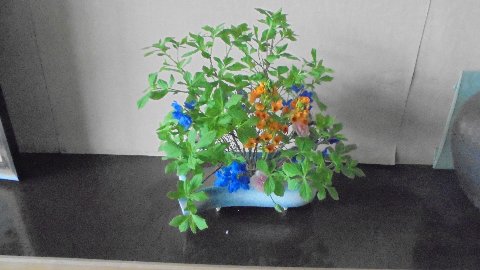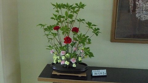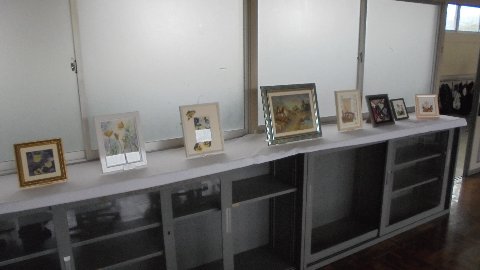 左から城村先生の写真、葛葉さんの押し花、林さんの折り紙、細川先生の生け花・・・ありがとうございます。