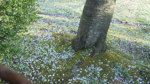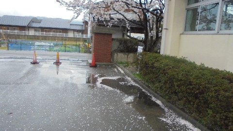 花びらがいっぱい散ってしまいました。それを踏みしめて今日も元気に登校します。