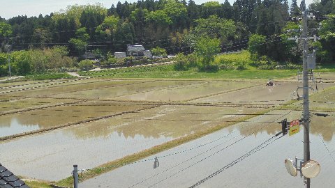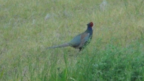 先日から学校の界隈では、サルや熊の目撃情報が流れ、新聞にまで載っています。今日は、かわいらしいものを見かけました。それは、キジです。飛ばないで工事の関係で田植えをしていない田を走り回っています。写真は色がきれいな雄でしょうか。子どもたちは桃太郎の話を思い起こしています。