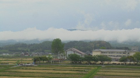 最近このページで学校のバックにそびえる宝達山の写真を載せています。毎日その姿を変えて興味深いです。今回は幻想的でした。