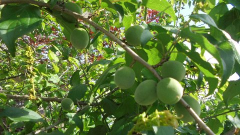 きれいな花が咲きました。なんというはなでしたっけ、手まり・・・おしえてくださいね。横を見ると梅が実をつけ始めています。今年は何にして食しましょうか。大きくなるのが楽しみです。