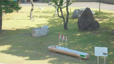 まるで、古代の遺跡のようになっています。住居跡の丸いくぼみ、集落を囲むように環濠が掘られています。歴史学習でジオラマを作ったのでしょうか。