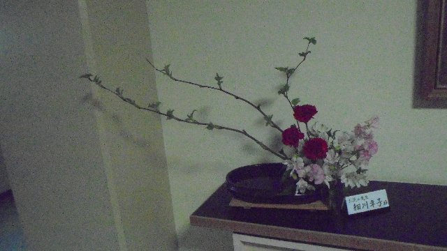 今年もお花ボランティアの細川さんが新春の花を生けて下さいました。お正月らしいすてきな花です。いつもありがとうございます。今年もどうぞよろしくお願いします。