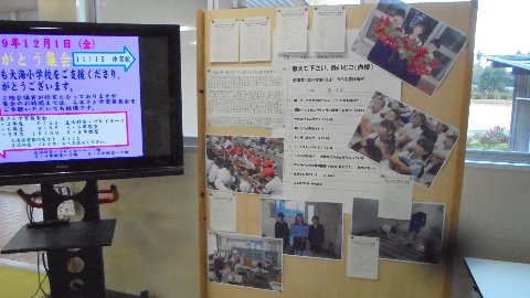大型ディスプレイを使って本の紹介が始まっています。冬休みにたくさん本を読んで下さいね。