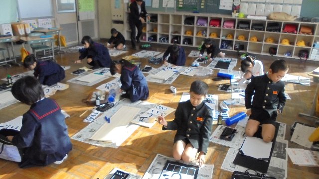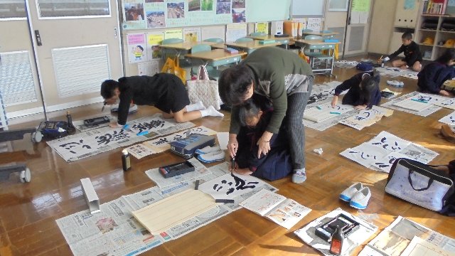 昨日今日と続けて、書写指導ボランティアの城村先生に来ていただきました。書き初めの練習を見ていただきました。実際に手を取って教えていただくなど丁寧に指導していただきました。おかげで上達著しいです、本番清書が楽しみです。