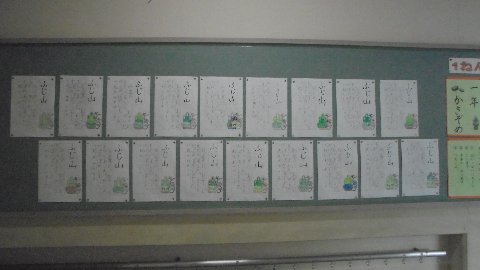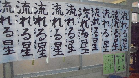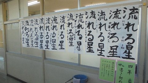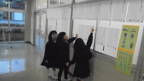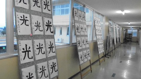 11日まで展示された後、字の上達を願って地域の左義長で燃やしてもらいます。展示期間中、お時間があれば見に来て下さい。持ち帰りたい方は担任に展示中に申し出て下さい。家に飾るのもいいですね。