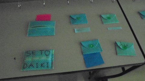 学校に作品を持ってきて下さった方は、二ツ屋の西山さんです。作品はビーズ細工です。とても細かい作品でその分とってもきれいです。百聞は一見にしかず。見に来て下さったら驚くと思います。お待ちしています。
