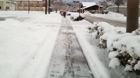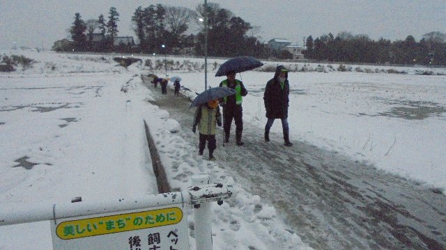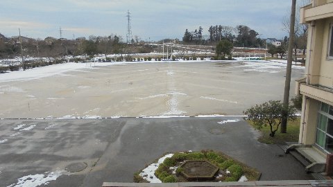 昨日、局地的に学校のまわりだけ?しめった雪が積もってしまいました。またまたパトロール隊のみなさんが除雪をして下さいました。ありがとうございます。いつまでつづくのやら、この寒波は。みなさん雪のスリップ、安全に十分気をつけましょうね。子どもたちにもなれた頃がこわいと指導します。
