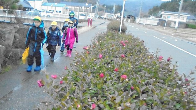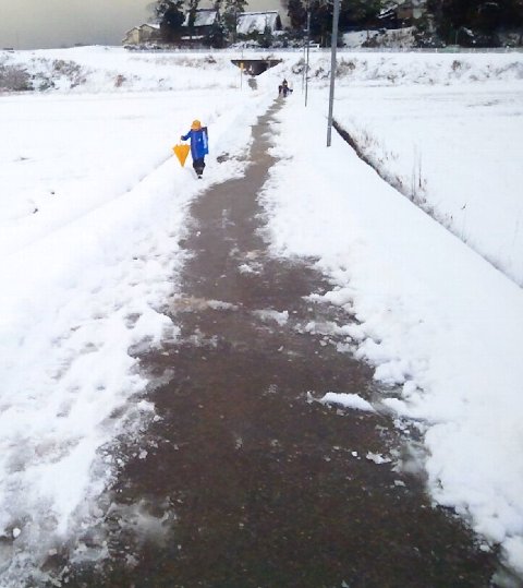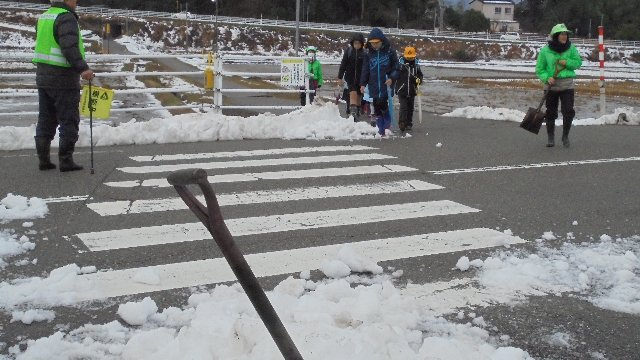 雪がいっぱい、つるつるでした。歩きにくい道を高学年を先頭に仲良く助け合って登校です。最後尾はこんな寒い日も防犯パトロール隊のみなさんです。本当にありがとうございます。一昨日から通学路の除雪をして下さったという話も耳にしました。今朝も横断歩道の除雪、感謝。