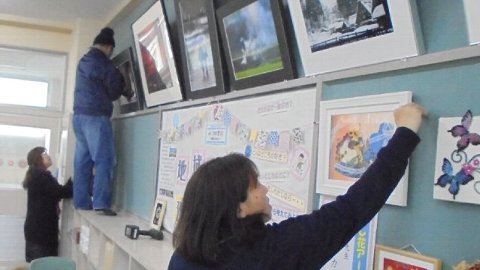 今週、3階の児童会室壁面を利用した地域交流コーナーに地域の有志の方の作品を一部新しく加えました。