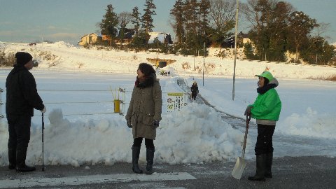 ボランティアの方が横断歩道の圧雪を取りのぞいて下さっています。ありがとうございます。