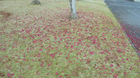 でも、下を見るとご覧の通り、花びらが真っ赤なじゅうたんになっていてきれいでした。
