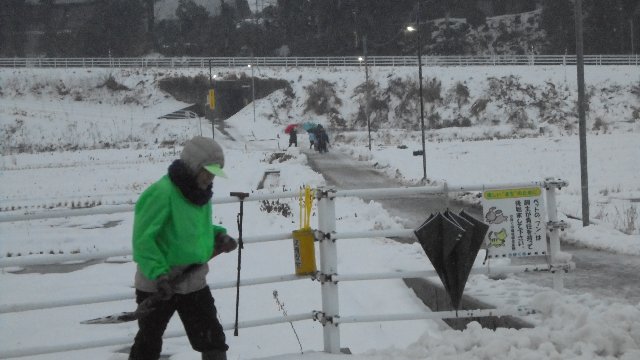 おかげで体育館前の駐車場も確保できました。十分事故に気をつけておいで下さい。大海交流センターもご覧の通りあけてもらっています。