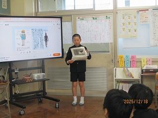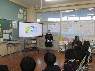 1限目に、4年生が国語「もしものときにそなえよう」の学習で調べ、スライドにまとめた内容を3年生に発表しました。「災害」をテーマに、様々な災害の恐ろしさや災害発生時の行動等を伝えることができました。3年生は、4年生の発表のおかげで災害についての知識が増えました。いざ、災害が起こった時には今回の発表内容のように行動し、自分の命を守れるように避難してほしいと思います。