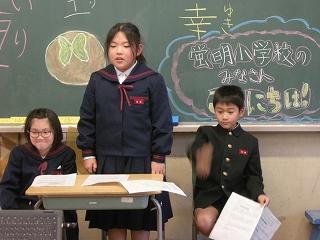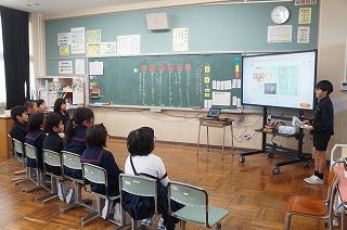 総合的な学習の時間で学んできたことを他学年と発表交流する時間がありました。6年生は「方言で語る今と昔の大海小学校」を劇で下級生に披露してくれました。5年生は「米から学ぶ」で各自がつくったプレゼン・スライドを使いながら、グループ別に3・4年生、6年生に発表をしました。5年生・6年生は他学年の人に聞いてもらうために、わかりやすくて楽しめる発表になるよう工夫していました。来週は3年生が岡山県の蛍明小学校の子たちとオンラインで発表交流をします。岡山県の3年生との交流が楽しみです。