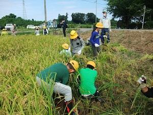 みんなで協力して稲刈りをしました。