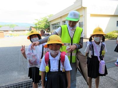黒部さんは毎日、暑い中下校時大海小まで歩いて来て下さいます。