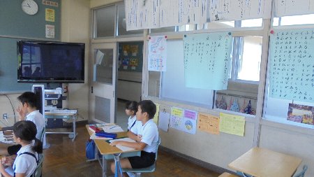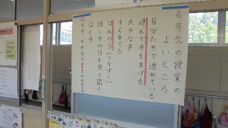 「面白い取り組みをしています」というニュースを先週知らせました。これが答えです。最高学年の6年生のよい授業をビデオに撮りすべての教室で視聴しました。どこが自分たちの授業に比べて良いのか話し合いました。そして「6年生みたいに」を合い言葉により良い授業を目指しています。