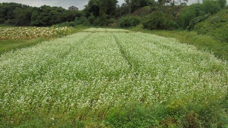 先日ソバの花を紹介しましたが、学校のそばにもこんなきれいに咲きそろった畑がありました。