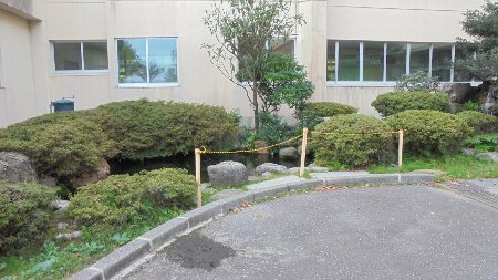 ロープを張って、池の水際ぎりぎりまで近づけないようにしました。メダカが泳いでいて浅そうに見えるこの池、実はおもったより深いのです。各クラスでも気をつけるように担任から話してもらいました。