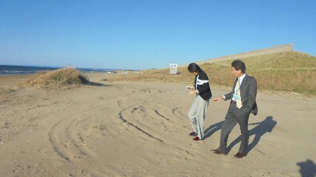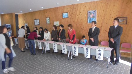 岡山からお客様 大海小に関心、感心