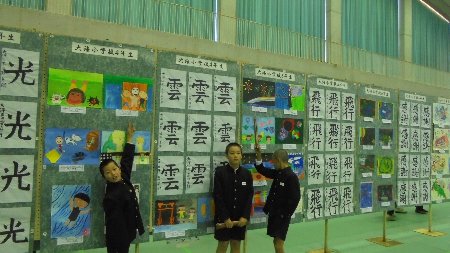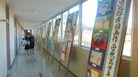 今日と明日、河北台中の体育館で市内小学生の習字や絵画の作品展示が行われています。ぜひ足をお運び下さい。終了後は各教室の前に貼り出し学校公開の時見ていただく予定です。