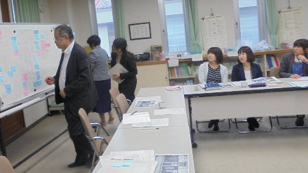 校内の全教職員で授業をもとに子どもたちの学力が上がるよう研究しています。今回は金沢大学より松本謙一先生をお招きして公開研究会を開きました。また、校外からも7名の参加者があり、研究を交流しました。