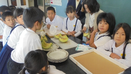教育ウィークの取り組みが記事になりました。今日は3年生がメロンを食べたことについて取材がありました。ケーブルテレビは4年生が九谷焼の絵付けをしたことを取材においでました。楽しみですね。