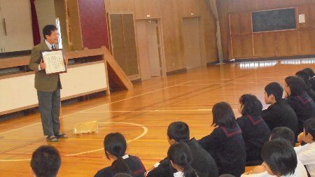 金沢大学大学院教授松本謙一先生です。今月末国語の授業の指導に先駆けて学校の子どもたちの学習の様子を参観して下さいました。学習環境の良さ、子どもたちが生き生きしている様子を褒めていただきました。全クラス回っていただき、途中5年生の家庭科では味噌汁の味見もしていただきました。5年生はできあがったら味噌汁を校長室に配達してくれました。とってもおいしかったです、ありがとう。