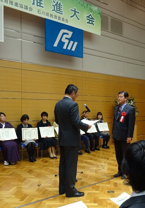 本日、河北台中学校講堂にてかほく市PTA大会が開催されました。席上最初にPTA功労者として前年度大海小PTA会長の山本さんが表彰を受けられました。おめでとうございます。そのあと家庭教育委員の取り組みとして副会長の古川さんが本校の長年の取り組みであるハッピー貯金について発表して下さいました。休みにもかかわらずたくさんのご参加ありがとうございました。