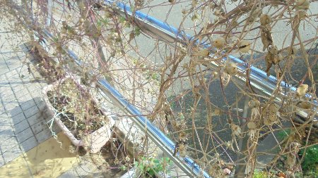 体育館前でたくさんの花をつけた宇宙朝顔の種が今たくさんの種をつけています。ご来校の折はぜひ種取りをしていって下さい。来年お家で植えてもらえればと思います。こぼれた朝顔が芽吹くのも楽しみです。