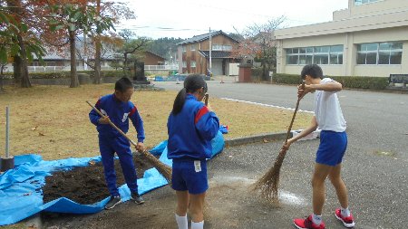 写真を見て下さい。もう時間が無いというのに最後まで率先してきちんと後始末までしてくれました。誰が言ったということなく、ほうきを持ってきてこぼれた土をはいていました。素晴らしいですね。感嘆しました、大海小学校自慢の6年生です。