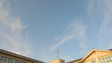 この時間に、この方向に、こんな形の月。方角は南の空です。もう時間がわかりますね。理科の学習でした。お家でも月や星を家族でご覧になって学校での学習したことを確かめてあげて下さい。