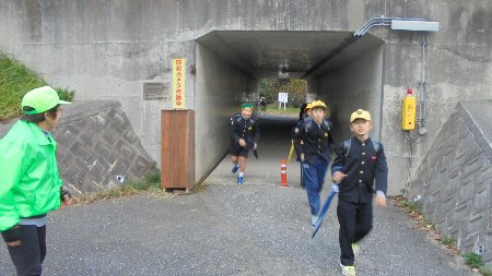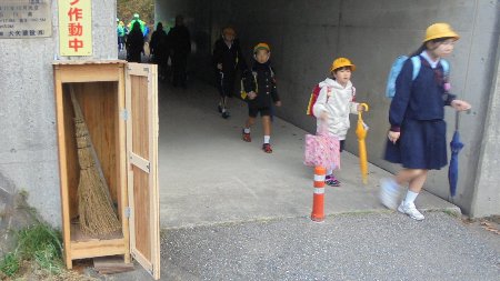 ここは、子どもたちが登下校で通る河北縦貫道下トンネルです。いつも防犯パトロール隊の方々が見守りだけでなく、清掃もして下さっています。掃除用具を収納する場所がなかったので自主的に収納箱を作って下さいました。