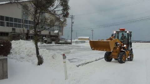 早朝より体育館前の駐車場を重機で除雪してもらいました。昨夜はここが雪だらけでスペースを確保できなかったので、PTA関係の部会を中止しました。今日は学校運営協議会が夕刻予定されています。これでだいじょうぶです。