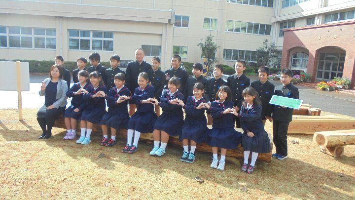 6年生が前庭で卒業写真を撮りました。そのあとせっかくだったのでおおみふるさとベンチでも記念撮影、アルバムに載ります。