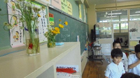 2年教室には、子ども達が校庭で摘んできた花が飾られていました。これもいいですね。