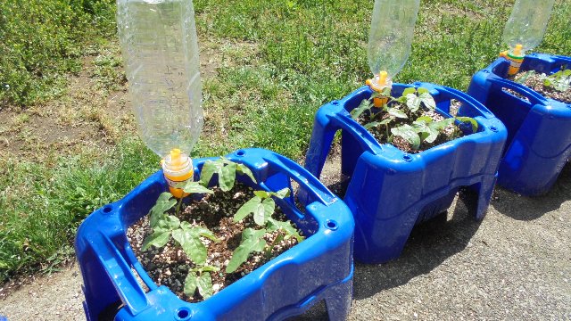 雨の日が少なかった5月です。子ども達は朝から大忙しです。1年生は、教室外の朝顔に、2年生は苗植えをした野菜物に、さわやか委員は玄関のプランターに、そのほかの学年も理科で学習しているヘチマやホウセンカなどに・・・ペットボトルやじょうろで水やりです。