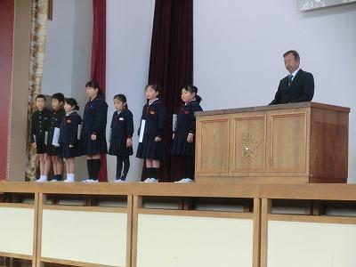いよいよ12月です。今年も残り1か月となりました。1限目は全校集会で表彰伝達を行いました。表彰された子供たちがステージに上がり、全校児童の前で改めて表彰されました。今月も多くの子が表彰され、大海っ子の頑張りを強く感じることができました。その後、校長先生のお話、生活目標の振り返り、今月の生活目標のお話と続き、最後に「ありがとうの会」で歌う「キセキ」を全校合唱して終わりました。