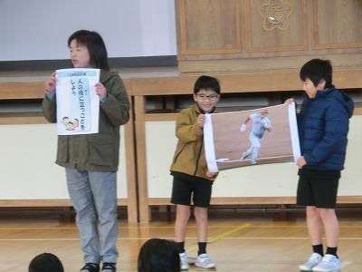 本日、ふるさと学習発表会を行いました。大海を中心とした地域を題材にして、総合的な学習の時間に学んだことを自分たちなりにまとめ、発表しました。聞く側は、1つ上の学年の発表を聞いて、来年度に向けて学習内容をイメージできるようにしました。3年生は、紋平柿と大豆の栽培について発表しました。4年生は、障害のある人たちにとって住みやすい街づくりについて、5年生は、米作りについて、そして6年生は認知症について発表しました。どの学年もタブレットでプレゼン資料を作成し、クイズを入れながら楽しくわかりやすく発表していました。何より感心したのは、どの子もはっきりわかりやすい声で発表していたことと、聞いている側もしっかり聞いていたことがわかる感想だったことです。今までの学習の成果が十分発揮されていました。