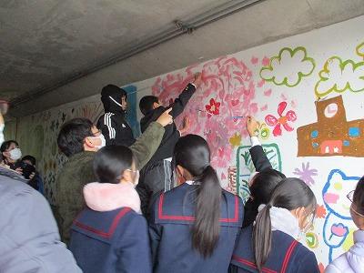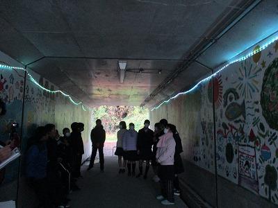 6年生が(株)PFUの皆様のご協力のもと、今年もトンネルアートにLEDテープを設置してライトアップをしました。LEDテープに光り方をプログラミングした後、トンネルに移動し、LEDテープを設置しました。人が通ったら光る人感センサーと音を立てると光り方が変わる音感センサーが使用されています。完成して、ライトアップされると、「ワーッ」と歓声が上がりました。12/25(月)まで、ライトアップされます。
