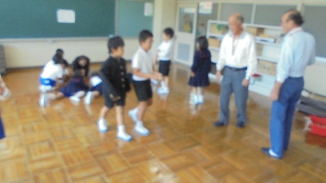 地域ボランティアの方に今日も来ていただきました。今回は高松老人会、大海地区の方々です。副会長の坂本学校運営協議会委員を始め8名のみなさんに昔遊びを体験させてもらいました。最初に自己紹介じゃんけん、これがおもしろくすっかり打ち解けました。そのあといろいろな遊びを・・・どんな遊びをしたのかお家で聞いてみて下さいね。