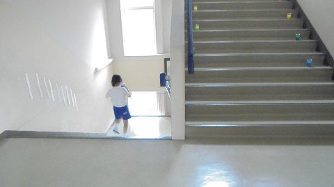 昨日の集会は、2階職員室前会議室で行いました。職員室で開始の時間を待っていると、いつのまに集まったのかわからないくらい静かに中へ入り整列できました。廊下もご覧の通りです。夏休みだからと言って規律の乱れはなさそうです。