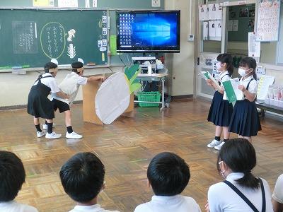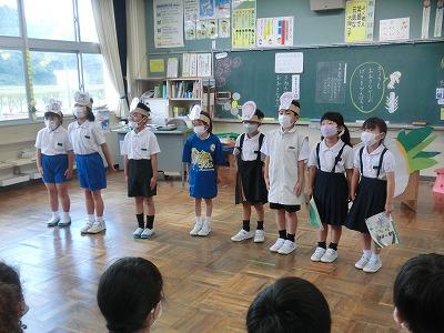 本日、朝自習の時間に1年生が3年生を招いて、国語の時間に学習した「大きなかぶ」の劇を披露しました。昨日は、2年生にも披露しました。どの子もしっかりセリフが頭に入っていて、自分で考えた動きも入れて、とてもかわいらしく上手に演じていました。