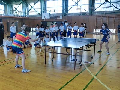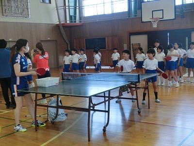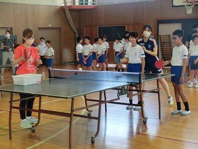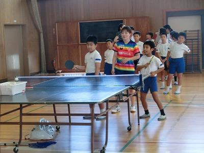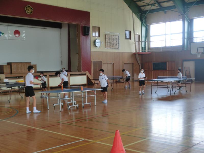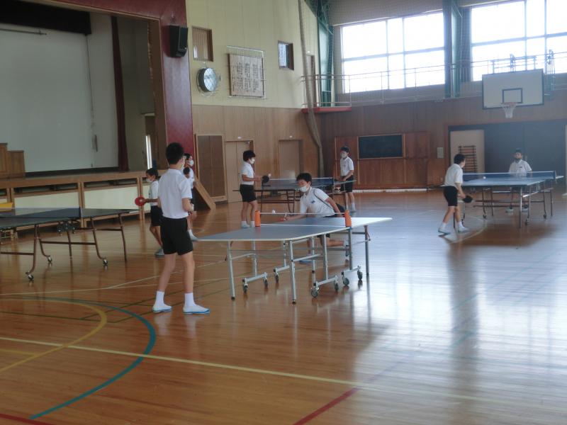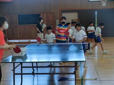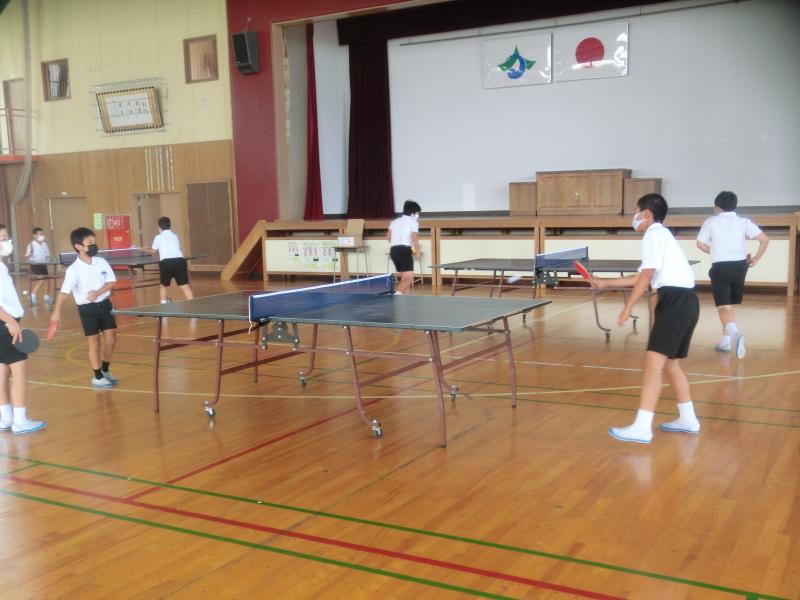 ☆休み時間には、体育館で卓球をする姿が見られるようになりました。昨日、日本ペイント様から卓球台を寄贈していただき、卓球教室を行ったことで、卓球に興味が出てきたようです。