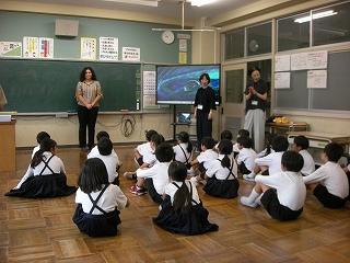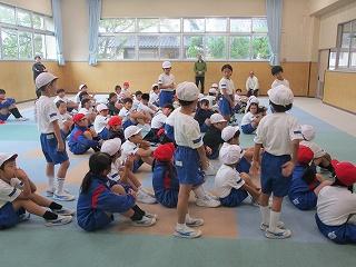 高松中学校のシタリ先生にご指導いただき、1限目に外国語活動を楽しみました。今回、はじめて会う先生なので、先生の自己紹介を聞いたり質問をしたりしました。その後は、体も動かし、楽しみながら英語に親しむことができました。シタリ先生ありがとうございました。